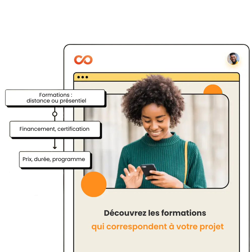 Avec notre outil de matching, gagnez du temps et sélectionnez les formations adaptés à votre profil.