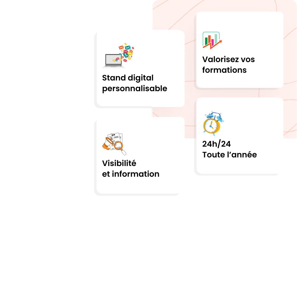 Un espace disponible 24h/24 pour mettre en avant vos formations, générer des contacts qualifiés et profiter d'outils innonvants, comme le matching.